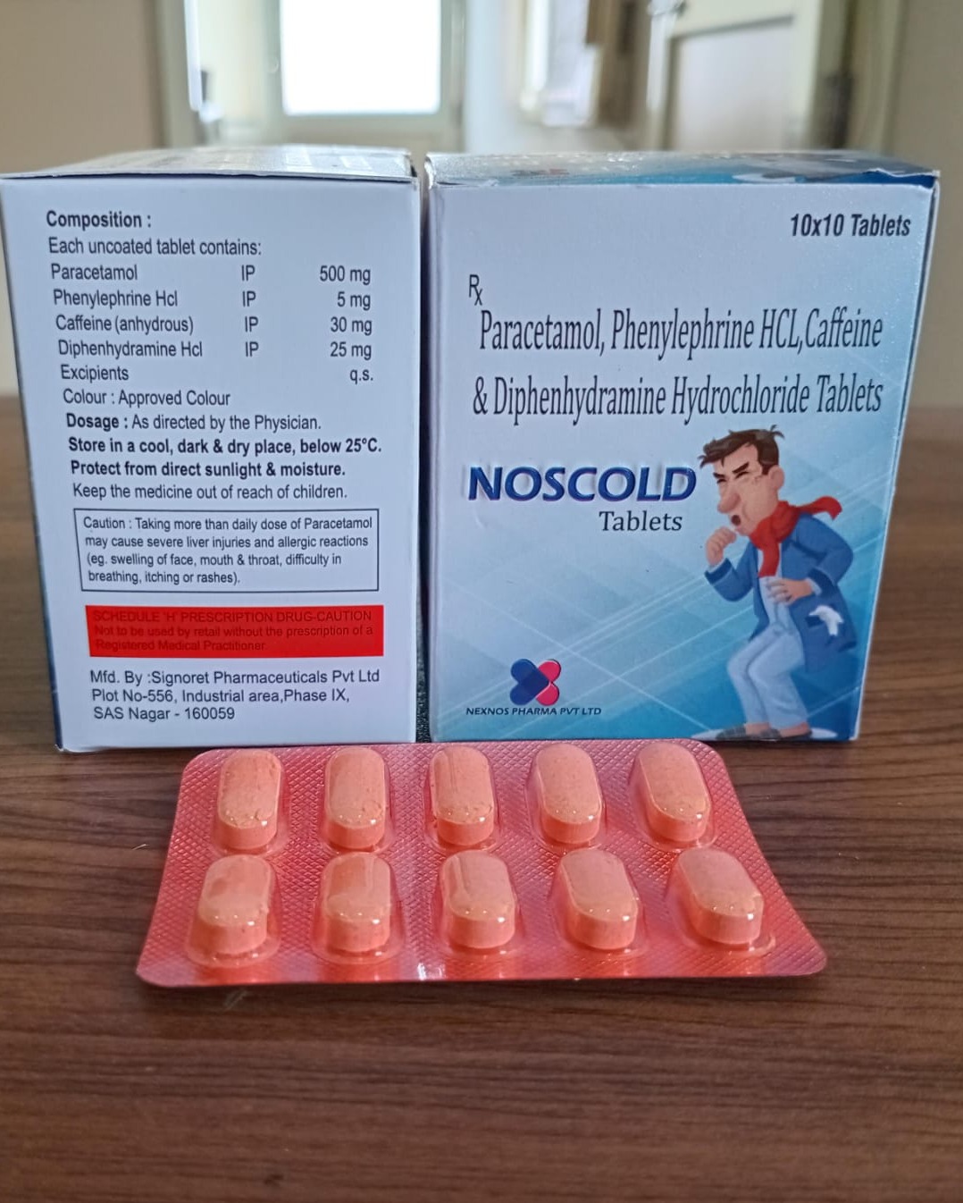 Paracetamol 500 mg, Phenylephrine 5 mg, Caffeine 30 mg, and Diphenhydramine 25 mg is commonly used for the effective relief of symptoms associated with the common cold, flu, and allergies. This formulation helps reduce fever, headache, and body pain while also providing relief from nasal congestion by shrinking swollen blood vessels in the nasal passages. It is beneficial in controlling symptoms such as runny nose, sneezing, watery eyes, and throat irritation. Additionally, caffeine enhances the pain-relieving effect of paracetamol and helps reduce fatigue, while diphenhydramine provides antihistaminic action and promotes rest. Overall, this combination offers comprehensive relief from multiple cold and flu symptoms, improving comfort and recovery.