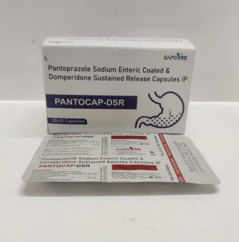 Pantocap-DSR is a powerful combination of Pantoprazole (40mg) and Domperidone (30mg SR) designed for effective management of acid reflux, GERD, heartburn, and nausea. It works by reducing stomach acid and improving gastric motility. Ideal for patients with chronic acidity and indigestion, Pantocap-DSR provides long-lasting relief and improves digestive comfort. A trusted formulation from Signoret Pharmaceuticals for complete gastrointestinal care.